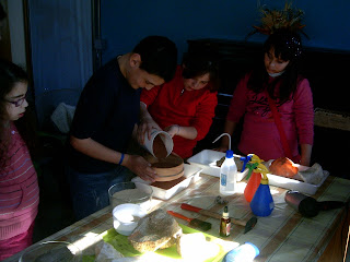 Em seguida aprendemos que os oleiros peneiram esse solo vermelho para retirarem as partículas mais finas.E foi isso que nós também fizemos.
